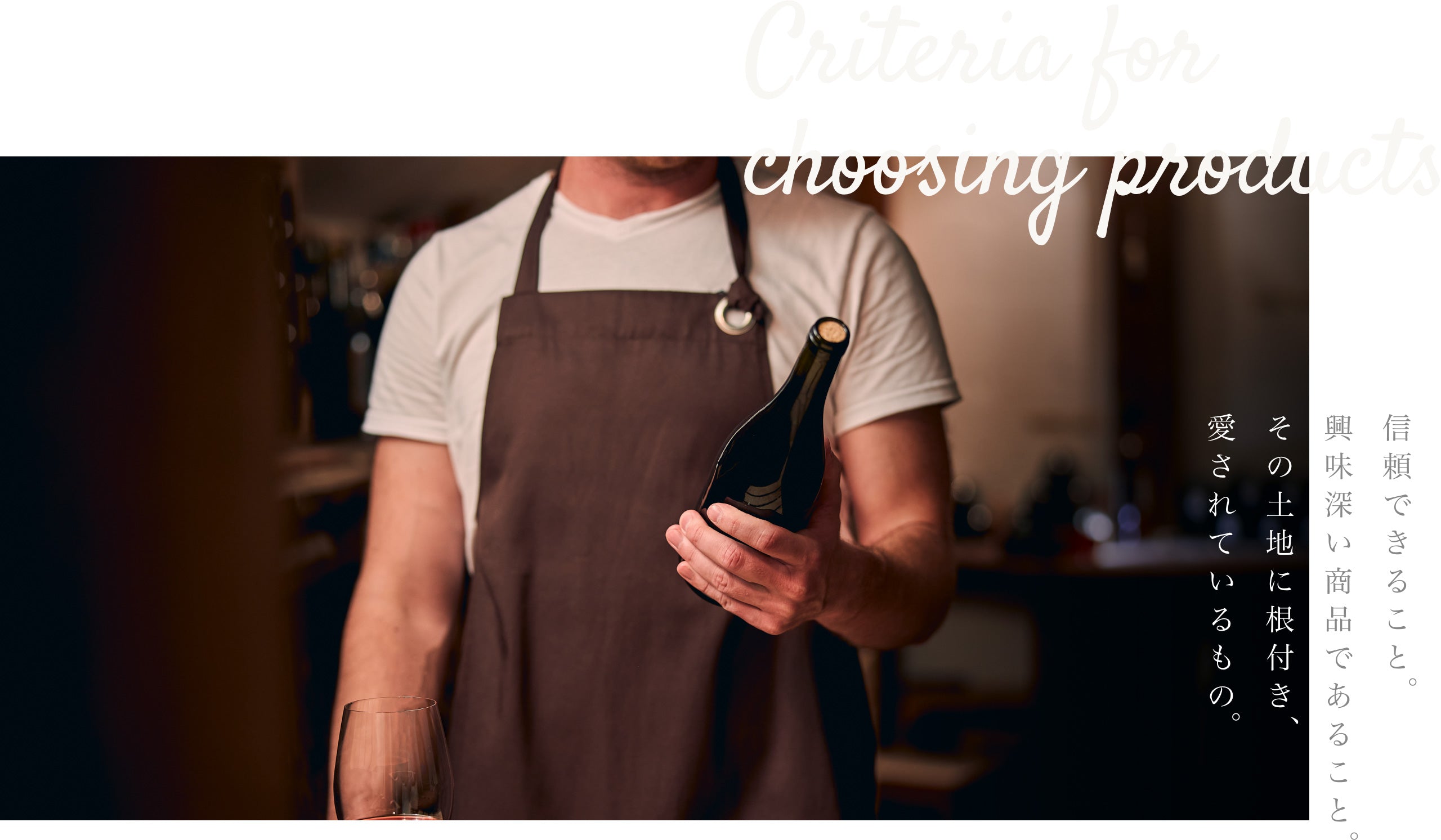 その商品に込められた品質や価値への究極の想い、その想いを形にすることができる献身的で情熱的な生産者とのみ、私たちは取引を行っています。