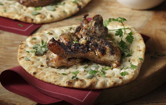 もっと簡単に、トマトソースやお好みの具材、チーズをのせてピザにしても。チーズはケファログラヴィエラやフェタ、ハルミを使うとユニークなグリーク・ピザが出来上がります。