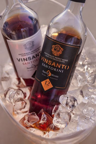 ヴィンサントは、サントリーニ島で有名な、自然な甘さのデザートワインです。葡萄を広げ、サントリーニ島の太陽の下で乾燥させます。この工程で、レーズン、干しイチジク、蜂蜜、ナッツ、コーヒーなどの香りを持つ、濃縮された甘い黄金色のワインが出来上がります。このワインは、原産地呼称保護ワイン(PDOサントリーニ)に属しており、アシルティコ種のブドウを少なくとも51%使用しなければなりません。サントリーニ島のヴィンサントは、砂糖を加えず生産される、世界でも数少ない甘口ワインの一つです。その自然な糖分は、ブドウを天日干ししている間に形成されます。