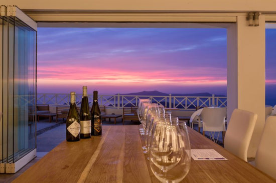 サントリーニは、南エーゲ海に浮かぶキクラデス諸島の島々の一つです。島のブドウ栽培地域は約1,400ヘクタールで、海抜から始まり、場所によって150から250メートルのカルデラまで段々畑のように上がっています。